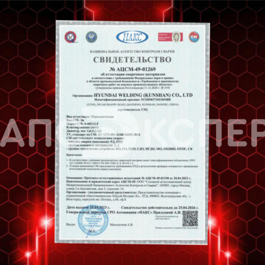 - Сертификация: НАКС