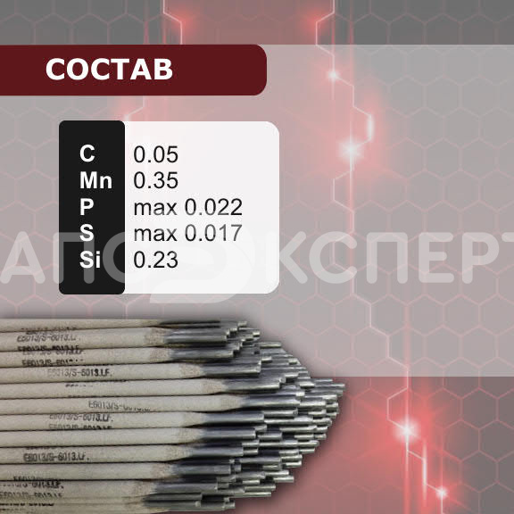 Универсальный электрод для сварки углеродистых и низколегированных сталей. Отличается высокой вязкостью металла шва, высокой скоростью сварки на вертикальной плоскости. Применение: S-6013.LF Используется для сварки стальных конструкций, машиностроении, мостостроении.